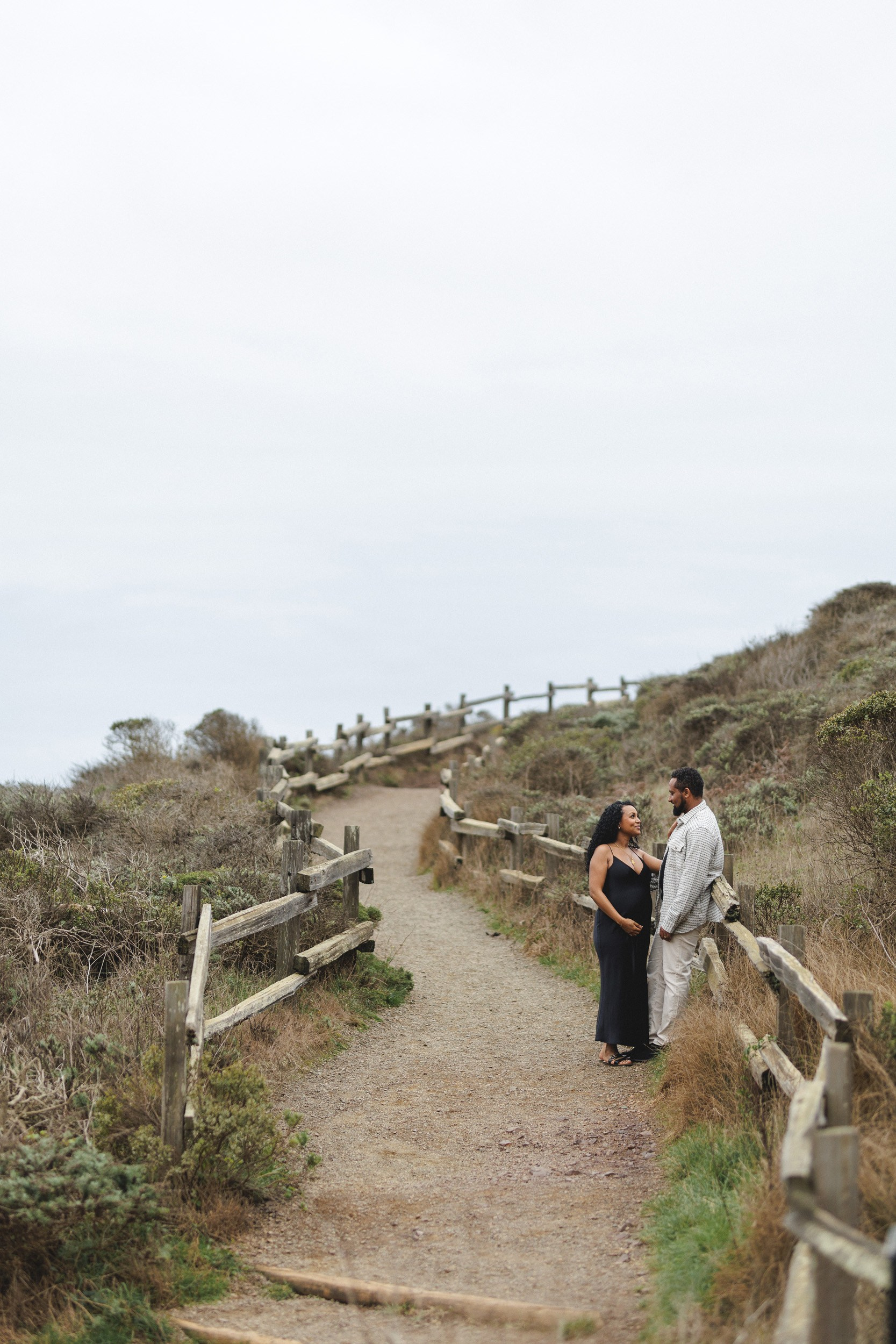 • Photographer’s Note: While many hope for sunny skies, my personal favorite is the moody atmosphere of an overcast day. The soft light and dramatic tones bring out a depth and emotion you simply can’t get on a bright evening — it’s the reason I chose Ocean Beach for my own session.